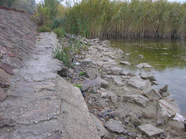 Gondoltam azért körbe nézek. Két csuka állt bent a csónakok között, így rápróbáltam gumihallal és életem sügére lett belőle. Másnap is lementem, a két napon összességében kb. 8 órát töltöttem sügérezéssel, és bár nem számoltam de bőven száz darab felett sikerült fognom, közte kisebb nagyobb példányokat. Az első napon átmentem még a kedvenc csukás helyemre, na ott fogadott igazán szörnyű látvány. Április elsején még itt bele csúsztam a vízbe, mert a betonszegélyen állt a víz, most meg: