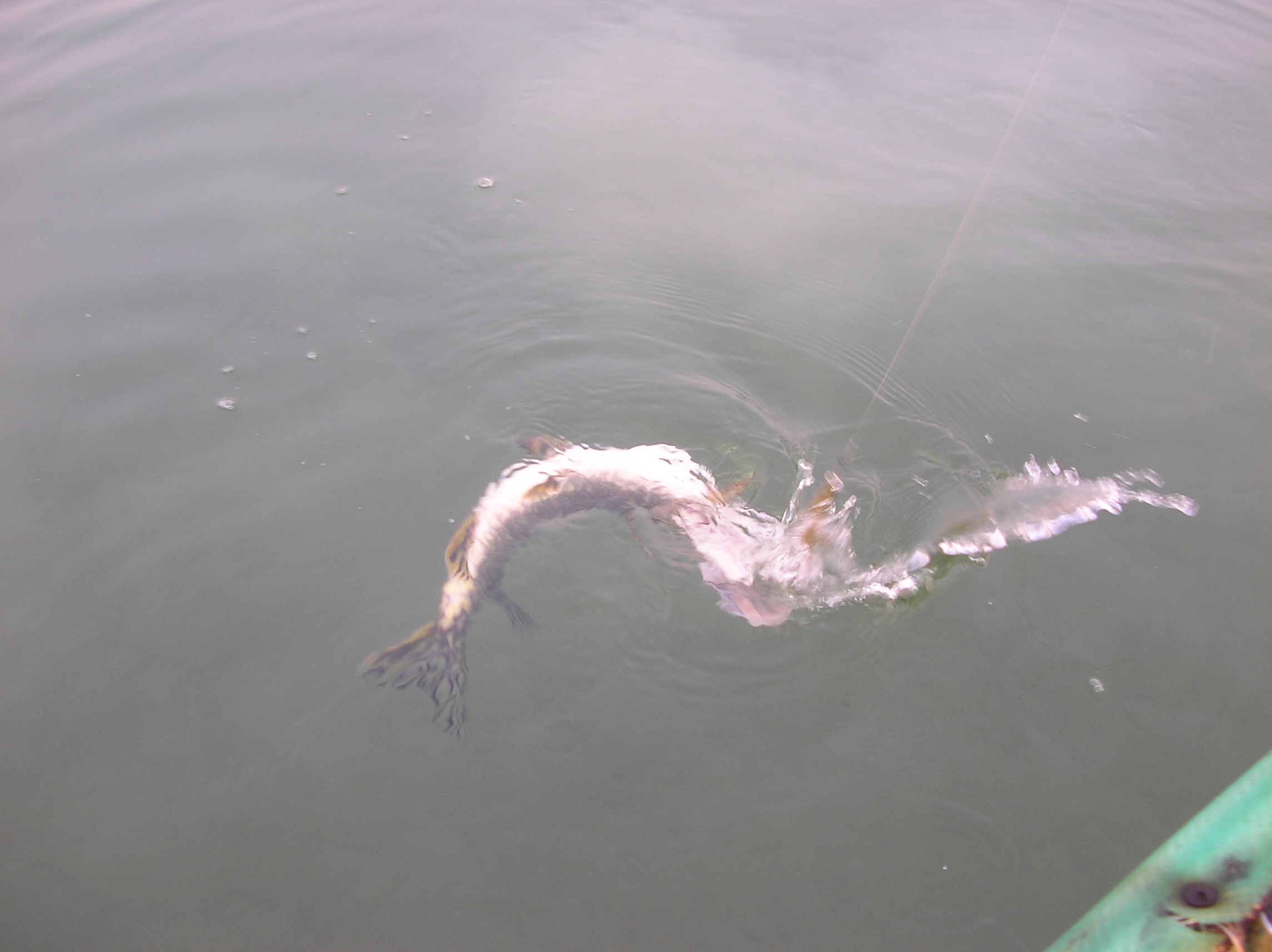 Mivel nem találtuk a hátralévő időben a csukákat, így kimotoroztunk a nyílt víz irányába balinok reményében, de sehol sem mutatták magukat. Rápróbáltunk a süllős pályára is különböző gumicsalikkal, de hiába. Végignéztünk még néhány öblöt további csukák reményében, de az újra leszálló köddel elszálltak a reményeink további csukafogásra és sajnos a kiindulási helyünkről is eltüntek a sügérek, így hazafelé vettük az irányt.