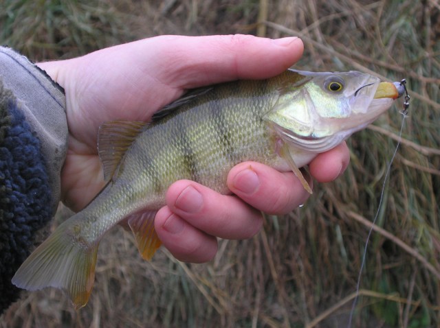 Mivel nem igen jött több kapás ezért pihentettem fél órát a helyet és újabb csukák után néztem. A csukák erről nem igen vettek tudomást, így visszatértem a bevált helyhez, ami egy újabb süllőt eredményezett. Ez a csíkoshátú valamivel kisebb 34-es példány volt.