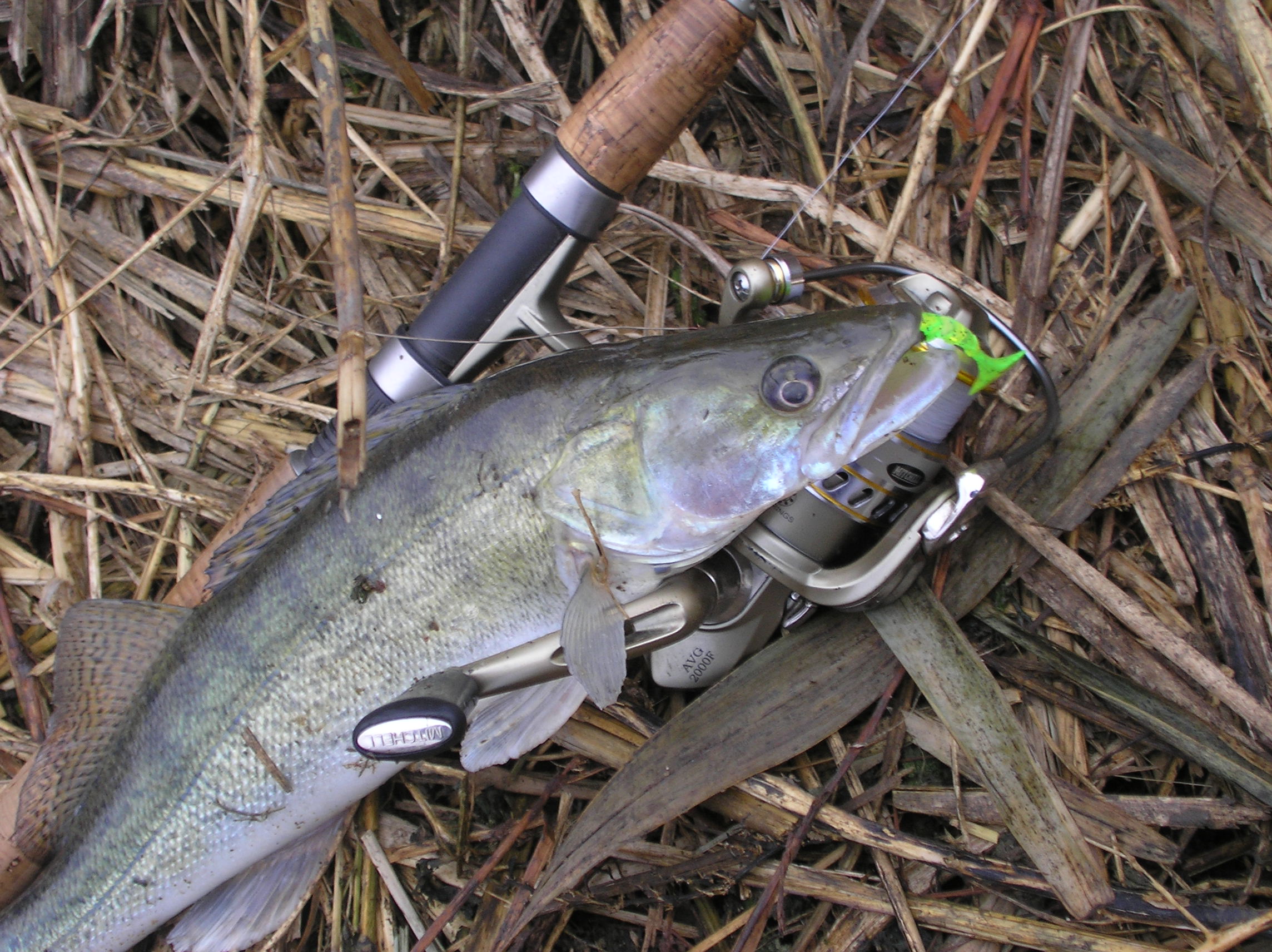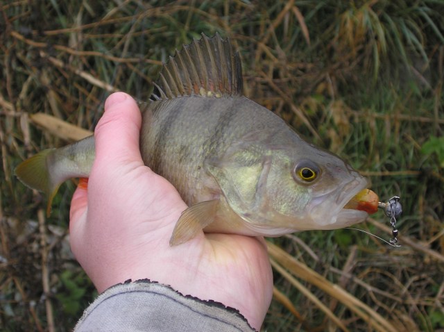 Váltogattam a csalikat, mígnem a zavaros víz miatt egy zöld berkley pulse shad mellett döntöttem, ami pár dobás után meghozta az első patakból fogott süllőmet, egy gyönyörű 38-as tüskéshátú képében.
