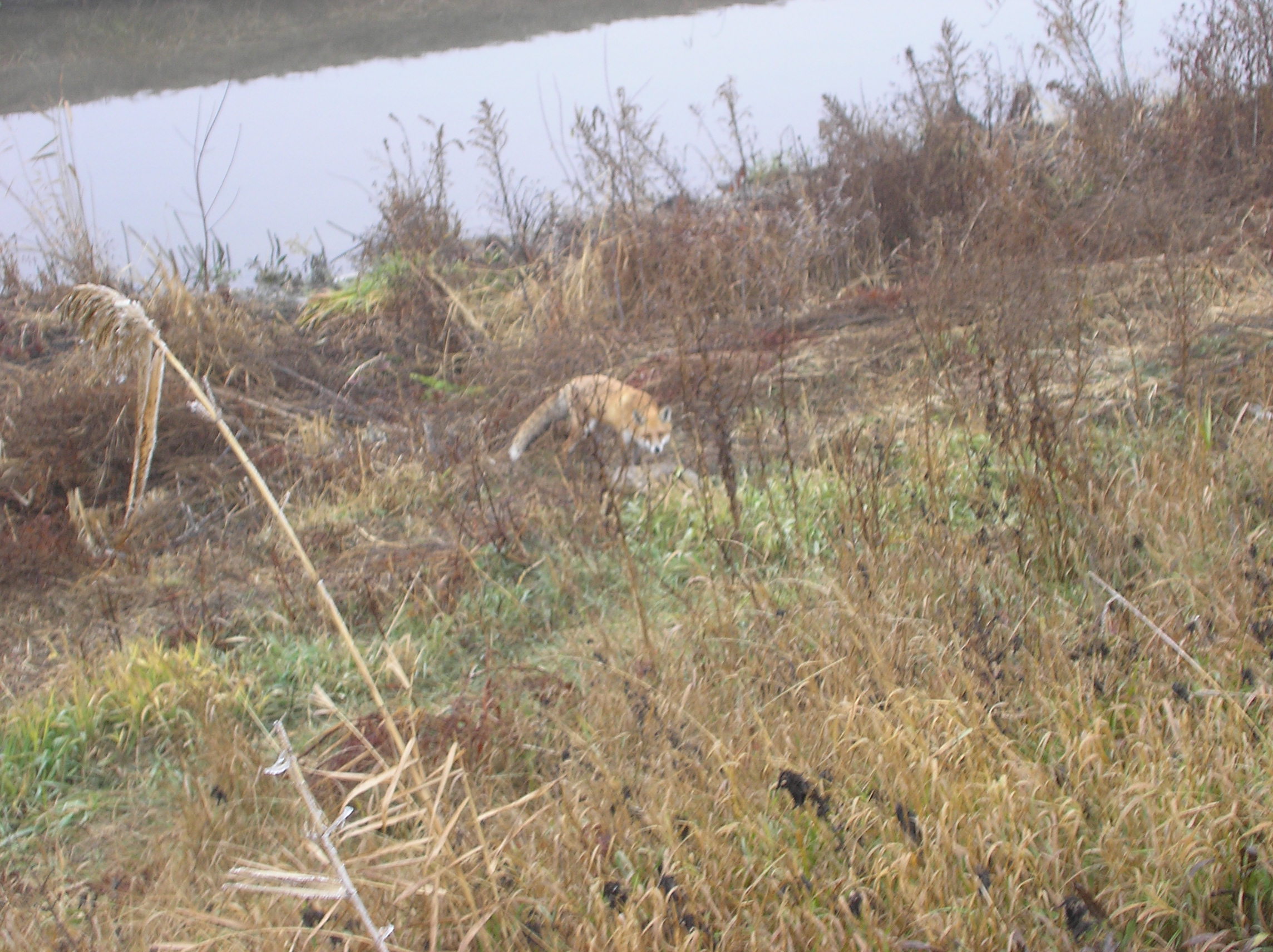 Ahogy felfelé bandukoltam a patakparton újra találkoztam Petivel, aki egy 56-os csukáról, egy sügérről, és egy süllőről számolt be nekem. Úgy nézett ki megindult a hal. A híd után aztán találkoztam egy helyi lakossal egy róka személyében, aki érdeklődve tekintgetett felém.