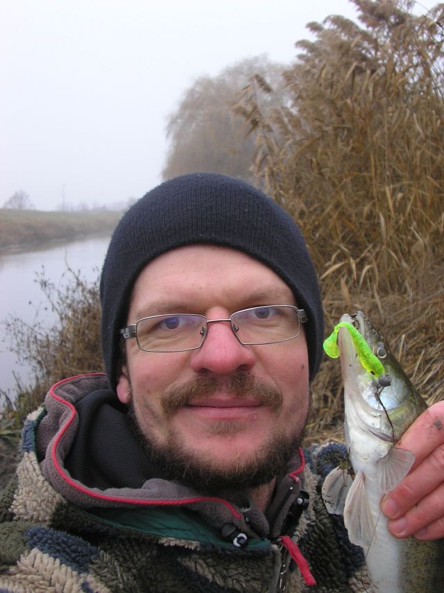 Jó hírek érkeztek kedvenc patakomról, megy a hal elég rendesen, csak tudni kell, mit mivel érdemes kergetni. Itt volt hát az ideje, hogy revansot vegyek a múltkori egy halas pecáért! Hétfőn szuper idő volt mifelénk, napközben plusz 12 fokkal, így a mai napon Lacival a patakot vettük célba. Reggel korán keltem, a 6:45-ös busz a találkozási pontra “repített”. Ködös hideg, reggelre ébredtem, Veszprémben – 5 fokkal, így be kellett öltözni rendesen. Inkább több, mint kevesebb ruha kell, hogy legyen az emberen, ebben a fagyos télies időben, ha melege van az embernek egyszerűen le tud venni egy – egy réteget, de, ha fázik és nincs több ruha nála az szar ügy. Szóval nyolckor már a napijegy a birtokomban volt, sokan nem voltak a patakon, tán a hideg riasztotta őket. A kapott információ alapján helyezkedtem el, Laci pedig felfelé indult a legyes bottal, kedvenc helyeit szerette volna vallatni csuka, sügér, vagy süllő reményében. Az első hal elég nehezen akart megjönni, ahhoz is kicsit odébb kellet húzódnom, de előbb végre személyesen találkozhattam, az egyik pecavilágos fórumtársammal “szennyeslelkű” Petivel. Dropshottal kezdte, de a kis víz miatt hamar apró twisterekre váltott, ami egy méret körüli és egy leakadt csukát eredményezett a számára. Szóval rövid beszélgetés után megfogtam az első halamat, mi mással, mint egy relax koytoval.