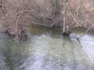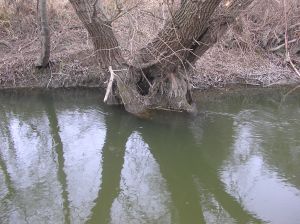 Egy idő után úgy döntöttem visszafordulok és elindulok folyásnak felfelé. Közben eszembe jutott, hogy Peti ez éven fogott domolykói mind kishal mintázatú fahalra jöttek, így én is egy ilyet választottam, és újra megpróbáltam a híd alatti részt. Végre volt is egy kapásom beesőre, de a domolykó igen apró lehetett, így sajnos nem akadt meg.