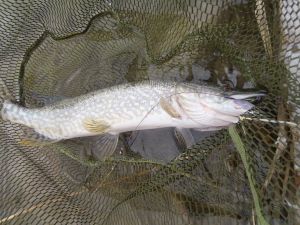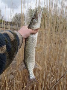 Télen vízszintes hóesésben is kimentem, mit nekem akkor a 60-70 km/h-s széllökés! Fél kettőkor már a parton voltam. Előző nap délelőtt szépen fogták a csukát, így a víz meg volt szórva rendesen. Az első helyen nem volt kapásom, a következő beállóban egy másik srác próbálkozott. Amikor eljött mögöttem átmentem a helyére. Igaz, hogy szarrá dobálta pályát, de télen jobbra a nád mellett fogtam szép sügéreket, a mélyebb részen pedig csuka is szokott jelentkezni. A szél sem volt túl erős, így a finomabb pálca és kedvenc kopytóm mellett döntöttem. A srác nemsokára hazament, de szerintem, még be sem indította az autóját, már egy erőteljes kapás után, szép kis csukával küzdhettem. Na nem volt nagy küzdelem, de igen megörültem, a 45 körüli jószágnak. Egyet rontottam el! A nemrég beszerzett kamerát még nem élesítettem be. Az új merítőt viszont sikerült felavatnom.