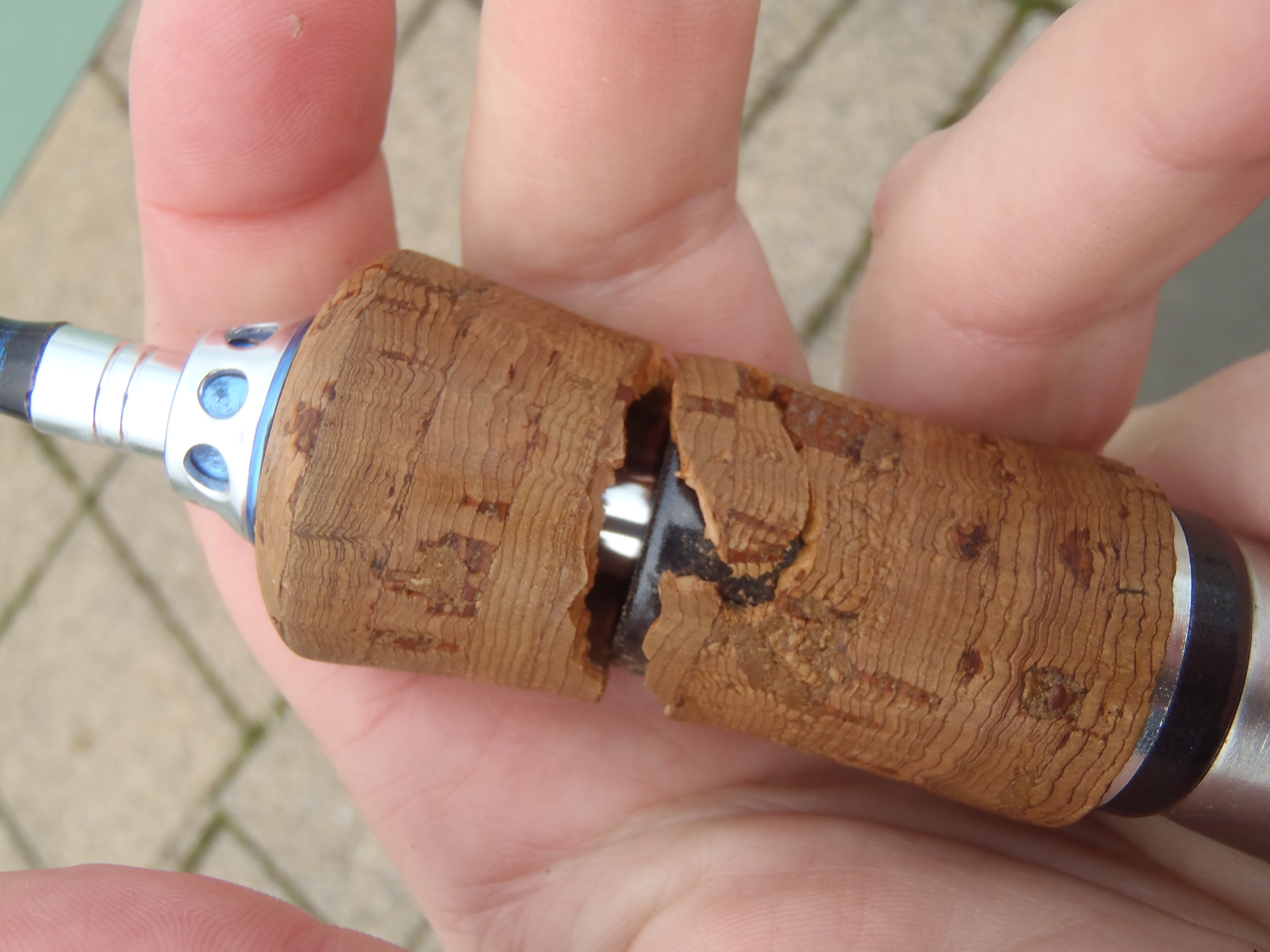 Ma reggel kimentem a mólóra. Sajnos kurva szarul indult a napom! Szokásomhoz híven az aluljáróban lámpafénynél összeraktam a felszerelést, óvatosan meghúztam az orsótartót. Már a kezemben a bottal indultam kifelé, amikor egy pattanást halottam, és éreztem a tenyeremben, hogy valami nem stimmel. Valószínű, hogy a szombati peca utóhatásaként megrepedhetett a parafa, és most elpattant.