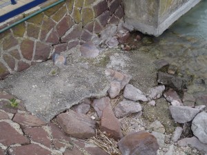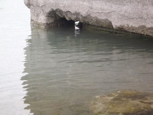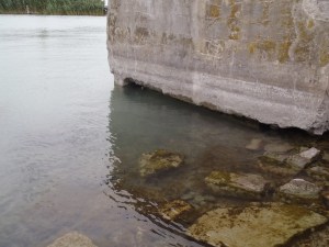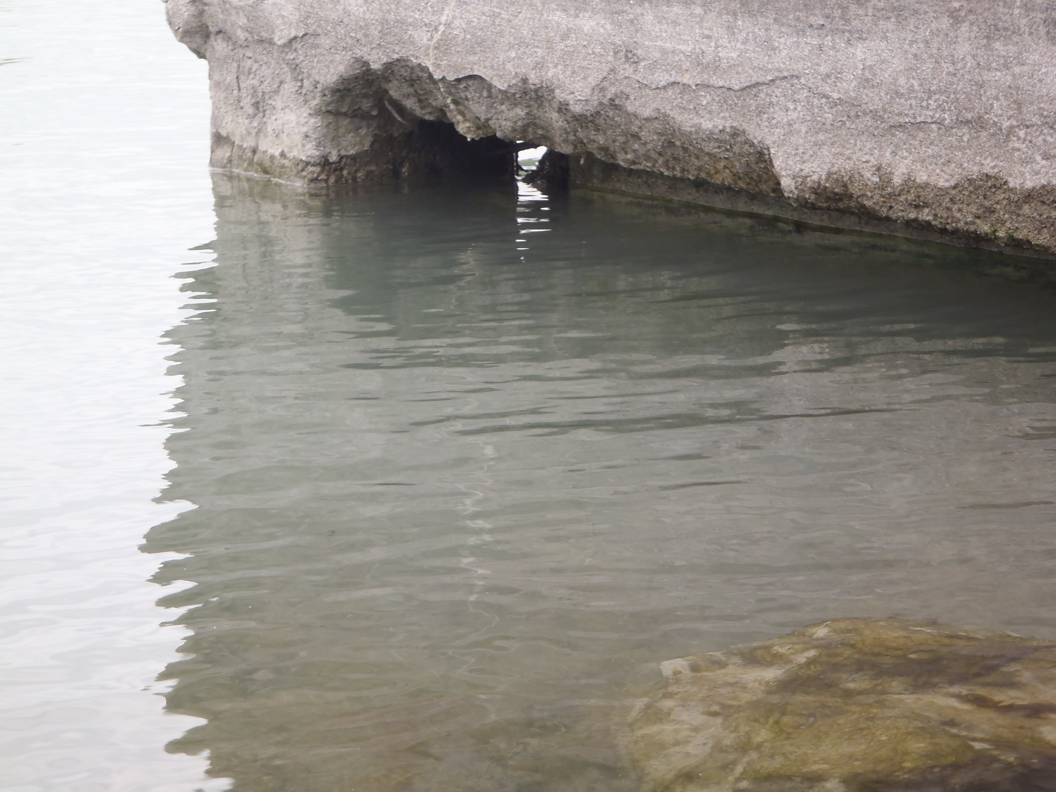 A móló alatt a sarkon át lehet látni a túloldalra, a szegély ami alá a sügérek be szoktak bújni teljesen kint van a vízből, talán ezért nem is fogok idén olyan sokat erről a részről.