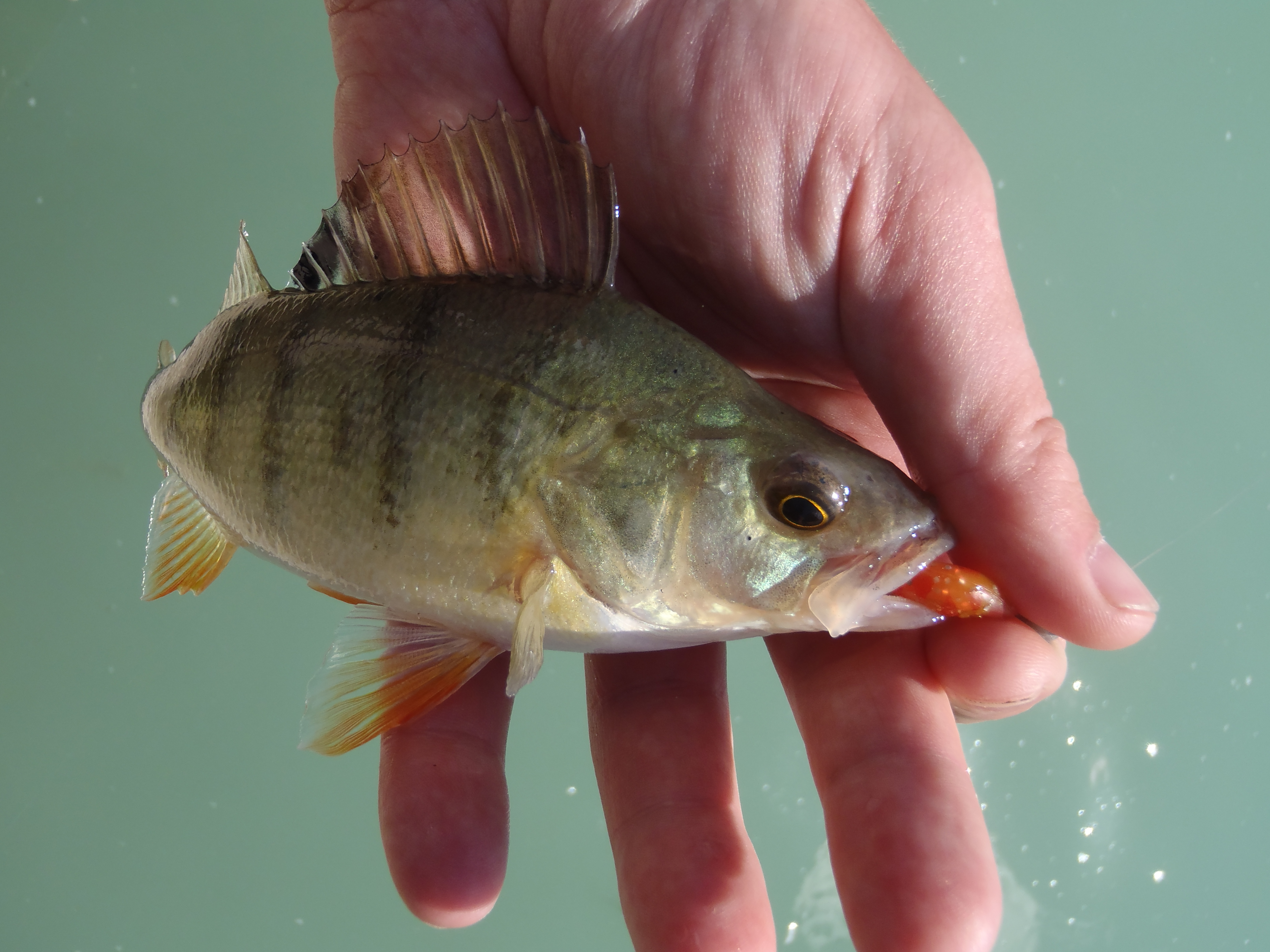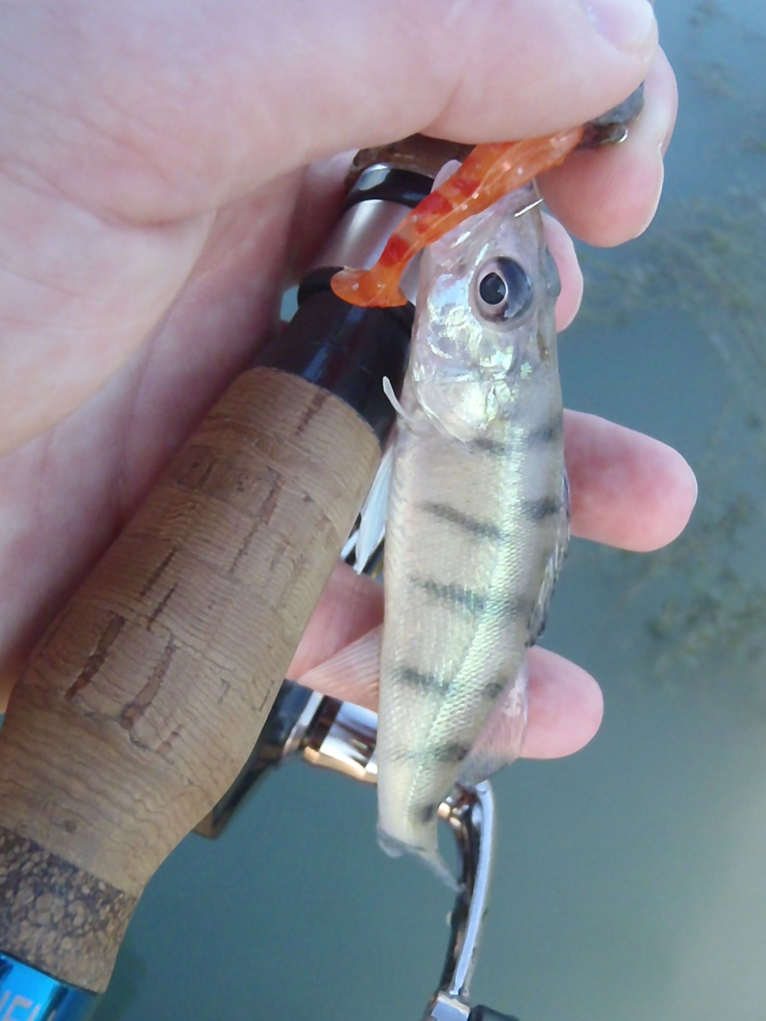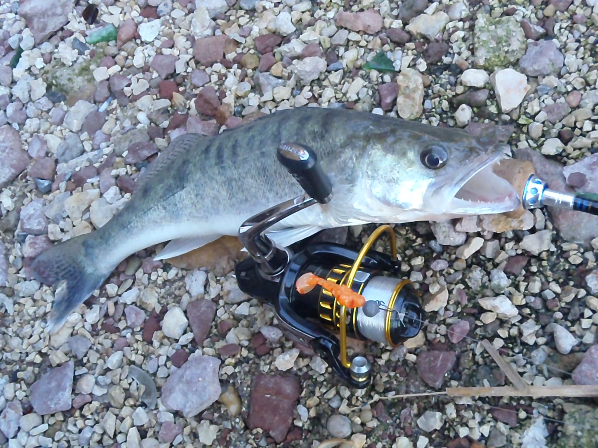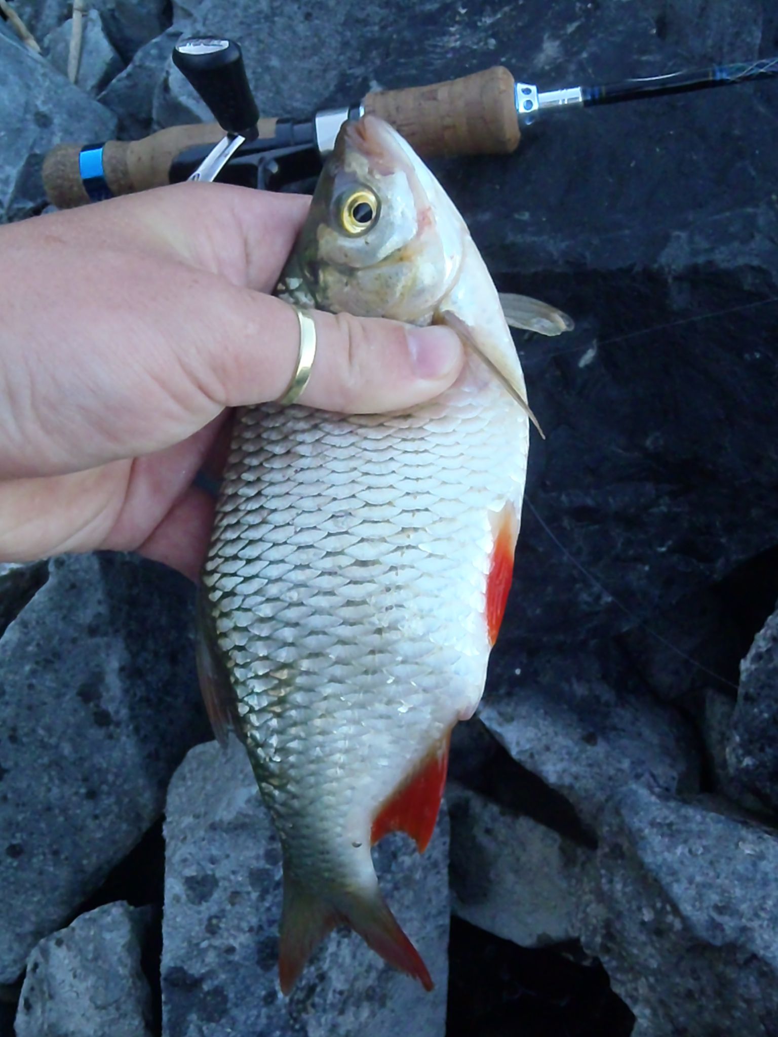 Szóval vöröskeszeg pergetés volt az A terv, a B terv csuka – balin. Hat óra után meg is fogtam az első vöröst, ami egyben az utolsónak is bizonyult, pedig nagyon élt a víz. 0,8 grammos jigfej, sárga twister volt a nyerő.