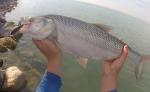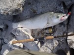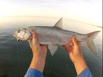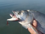UL-el kezdtem a horgászatot, két apró csípés után a beeső narancssárga twisztert lefejelte egy egész jó csuka! Szétverte a feszített víztükröt, majd elbújt a hínárban. Amennyire a finom cucc engedte kicibáltam onnan őkelmét, abban a pillanatban megindult, és felsírt a fék! Sajnos nem volt szerencsém, mert a horog bár szájszélbe akadhatott az apró mivolta miatt kipattant a halból és a fejem mellett elzúgva a hátam mögötti nádasban landolt. Sajnos nem igen volt jelentkező mígnem a távolban rengeteg a levegőben kőröző sirály látványa tárult elém. Elkezdtem figyelni őket, és akkor szétrobbant a felszín a madarak alatt több helyen is! Balinok voltak csapatban, ott ahol múltkor azt az egyet popperrel fogtam. Nosza utánuk eredtem! Odafelé egy magyar és egy német ajkú horgász cájgján kellett átverekednem magam, és amikor odaértem az egyik legszebb látvány fogadott! Forrt a víz, balinok fröcsköltek mindenütt, a kishalakat a partnak szorítva rendet vágta rendesen, a sirályok pedig az elkábult, megbódult halak közé csapkodtak. Elő is vettem a múltkor sikert hozó poppert, első dobás egy rablás közepébe esett, a balin kétszer is rányúlt, de sajnos nem kapta el.