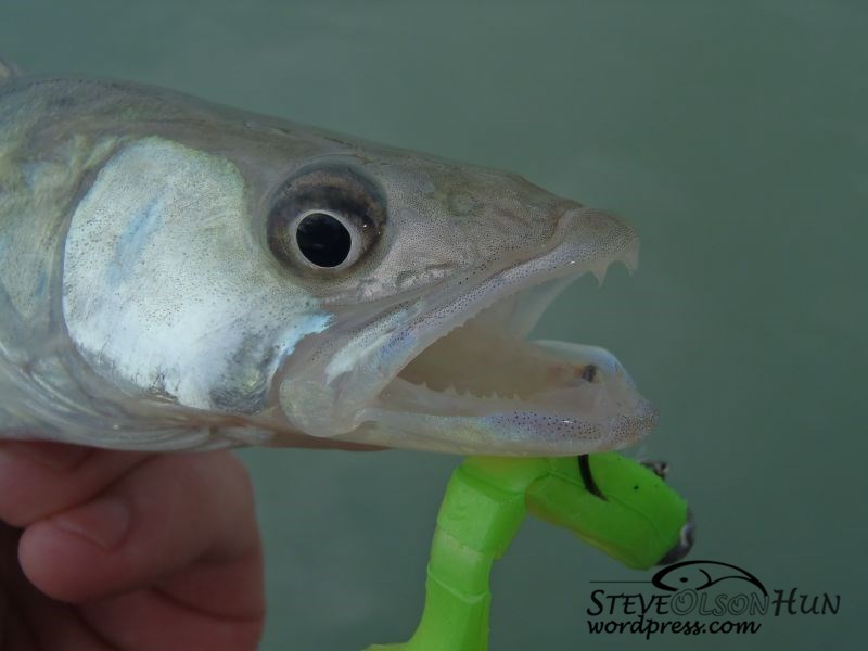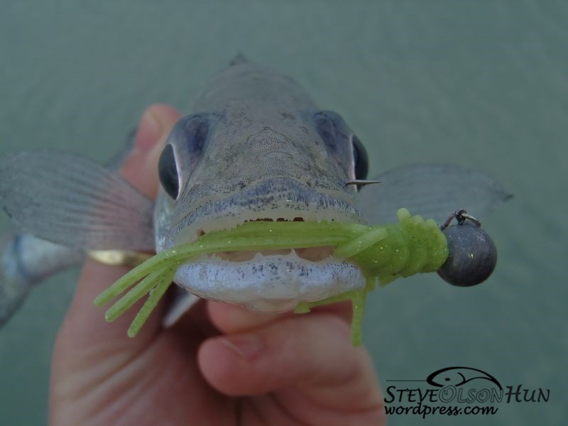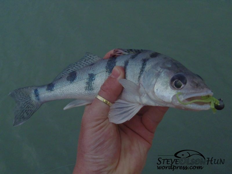 Csalit váltottam, és az egyik csónak előtt végre agresszív ütésem volt, nagyon ment a hal, de később kiderült, hogy a jig emelésekor mellévágott, és a “homlokába” akadt a microjig.