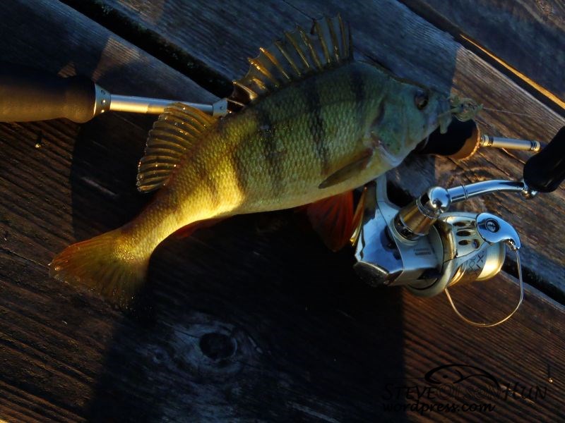 Vasárnap hajnali 6 órakor Csopakon találkoztunk Péterrel egy botbiznisz (illetve kettő), és egy sügérpeca ürügyén. Én a tőle vásárolt rövidebbik pálcát teszteltem elsősorban a tőlem már megszokott ánuszrózsa csalival, ő pedig gigasügér reményében érkezett a Balatonra. Kristálytiszta volt a víz, a szél sem fújt annyira, mint ahogy azt az erőlejelzés ígérte, így először bánkódtam, hogy otthon hagytam a csónakos felszerelést, de aztán az első sügér jó kedvre derített, nem beszélve a közben a stégre érkező nagypapa + két unoka által előadott show műsorról! 🙂