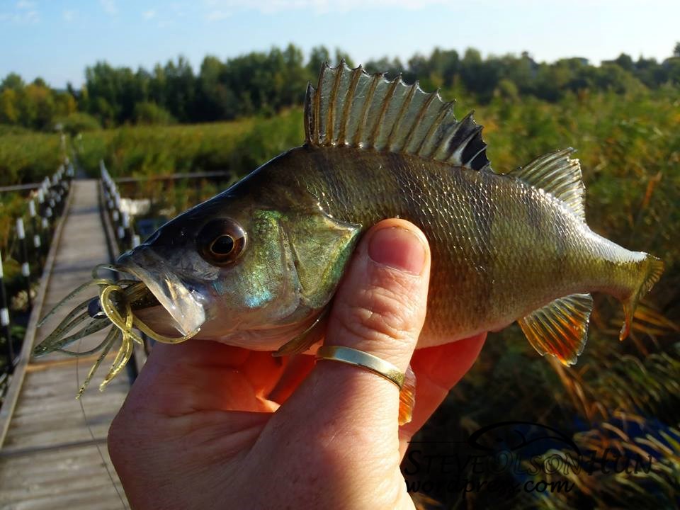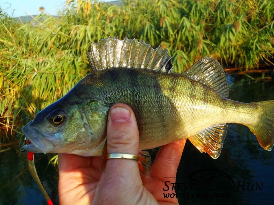Mivel csukák továbbra sem akadtak, a nap pedig egyre magasabbra hágott, így kikötöttem kajálni, és amíg barátom odaért kicsaptam pár sügért a csónakok közül, olyan 15 centis átlagméretben.