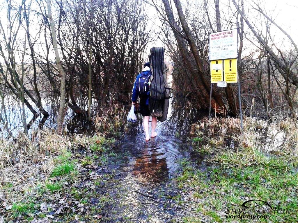 A peca olyan sztívondósan indult (ahogy barátom hívni szokott)! Gondoltam, hogy két héttel ezelőtthöz képest sokkal magasabb a víz, így csizmával készültünk, amit én annak rendje és módja szerint a melóhelyen felejtettem, így mezítláb kellett a tett színhelyét megközelítenem.