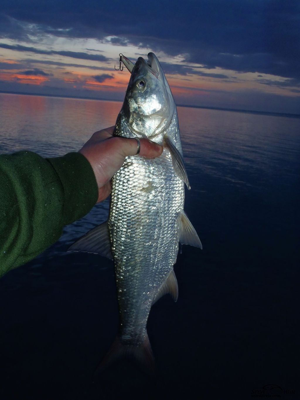 A mólószár nem igazán hozott szerencsét, így visszatértem abba a kanyarba, ahol a balinokat vártam, és újfent találkoztam előző éjszakai alkalmi horgásztársammal, aki már a második süllőnél tartott. A szerencse annyiban mellém állt, hogy a nyerő csali receptjét átnyújtotta nekem, és volt is belőle egy példány a dobozomban, így nem sokára egy kölyök süllőnek örülhettem.