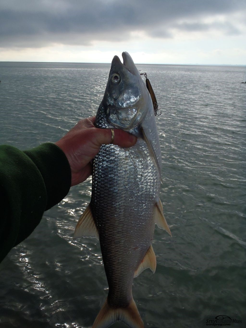 Mivel újfent visszament jobbra, ezért odébb álltam, sajnos megint csak rontott kapásig, lemaradásig jutottam el. Ezt a szerencsétlent meg megszánta két éppen méretes jószág, amik persze a hálóban végezték. Még annyi sem volt emberünkben, hogy lemásszon a kőre! Fentről a betonról a köveken keresztül rángatta fel a halakat. A két kis jószág tapasztalatlansága az életükbe került. Szeretem a halat, balint is eszek néha, de ezen a két napon egyik általam megfogott halból sem lett fasírt! 😀