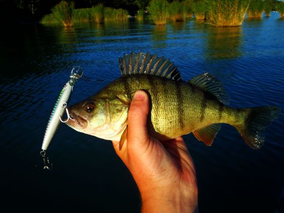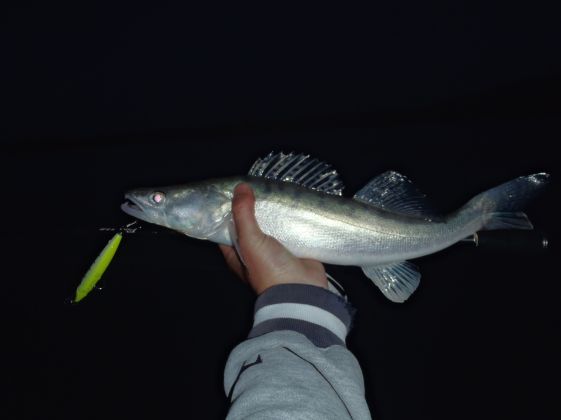 Történt egy hajnalon, hogy rengeteg küsz volt a stég előtt a nádban, a süllők pedig ott kaffogtak a sötétségben. Kettőt még a stégről sikerült elcsípnem a kisebbik prey tipikusan éjszakai színváltozatával (mert ugye a színekben is hiszünk 😉 ), majd egy jobbacskát már csónakból a prey91essel első dobásra.