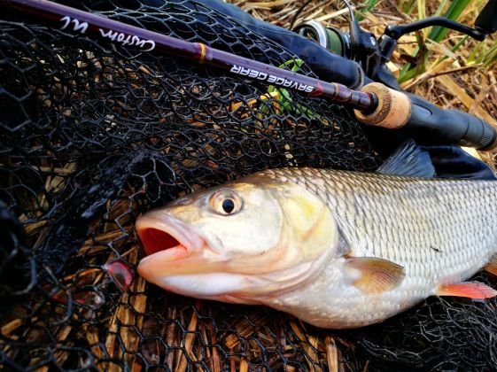 Hajnalban a zúgónál kezdtem. A víz rohant, kicsit még zavaros, hordalékos, és hideg is volt. Sajnos ezen a hajnalon nem tartogatott kapást így lassan elindultam lefelé. Próbálkoztam Skill barátom zúgóspeziál csalijával. Saját, és barátok által készített hendméd csalikkal és gyári remekekkel is. Az első 1,5 órában kapásig sem jutottam. Még a zúgónál a szemközti nádon maradt a kedvenc lárvám nymph színben. Már csak egy példány volt abból a színből a dobozomban, így egy másik szín került a kapocsba az olive pearl. Mivel még húz a víz, ezért néhány langós rész kivételével felfelé dobtam, és a víz sebességével együtemben vezettem a csalit lefelé. Nemsokára meg is érkezett az első delikvens, egy 30-35-ös forma ifjonc személyében.
