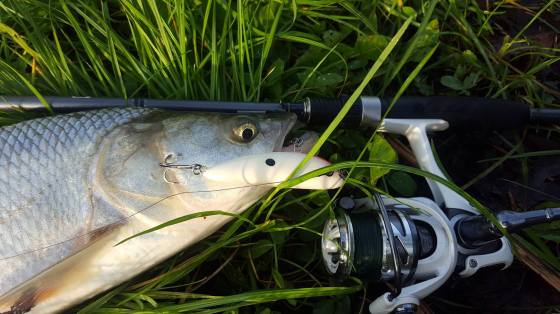 Még a csukának szánt előke se zavarta, teljes testes szaltóval vetette rá magát ez a tavi balin.
