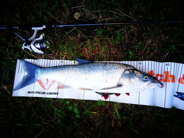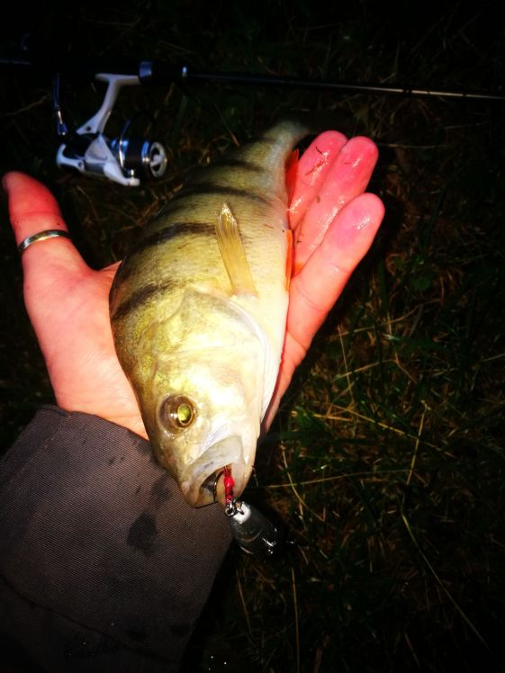 Nem nagy. 50es. ráadásul kiemeléskor már a hátsó horog nem volt benne a pofájában, de végem lett! Az ereim remegtek! Nem tudtam már utána pecázni! Még most is remegek! Nem kapja meg Szabi a csalit! 😀