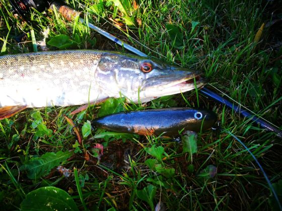 Szóval ha már levittem magammal kipróbálni, akkor miért ne ott próbáltam volna, ahol sekély, hinaras, szokott lenni csuka bár reggel nem adta. Először csináltam pár próbadobást, mivel a bot felső határa gyári adat szerint 65 gramm. Egy helyi öreg horgászott a kijáró végén. Bojlis bottal villantóval csapta a vizet. Egyszer repült a spicctag is! 😀 Nem értette mi csobban akkorát, így kijjebb jött megnézni. Na mondom akkor vegyük komolyra! Átmentem a nyíltabb, mélyebb részre. Dobtam. Húztam. Egész jól mozgott. Burvány! Mi van???? Megállítottam és BÁÁÁMMM!