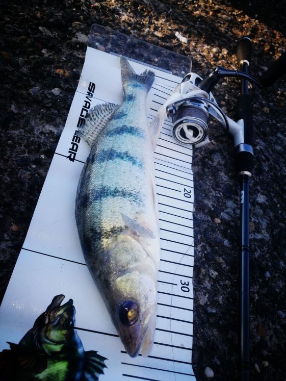 5 pályán jártam összesen, ebből 4 móló volt. 3 helyen leszakította a fejemet az egyre erősödő szél. Ebben a koszos kavargó vízben a süllő mellett a szabaduló kősüllő a legsanszosabb zsákmány. Szélvédett, tisztább helyeken pedig a sügér. Sikerült pár kisebb – nagyobb jószágot megcsípnem a rengeteg kapásból. Megjegyzem szombaton is sok kapásunk volt, de a 6,8-as cannibálra felakadó 15 centis süllő megmutatta, hogy kik a tettesek.