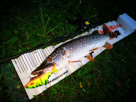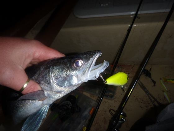 Este Szabi megint fogott egy szép csukát a kacsával tök sötétben. Az volt a tervem, hogy én is megpróbálom. Kicsit azért meglepett, amikor ötödik dobásra tolóhullámmal rontott neki valami a vak sötétben, de sajnos nem akadt meg! ![]()