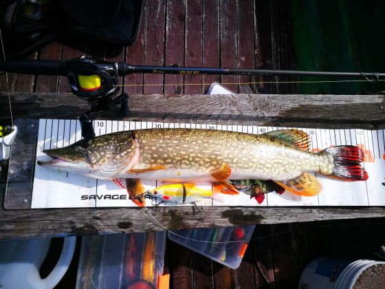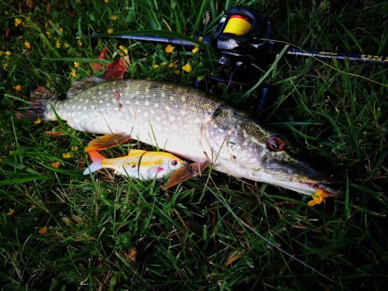 Ahogy a rablás helyére ért a csali nagyon szépen leszedte az idei legnagyobb csukám. (akkor még reméltem, hogy idén jön még nagyobb is!