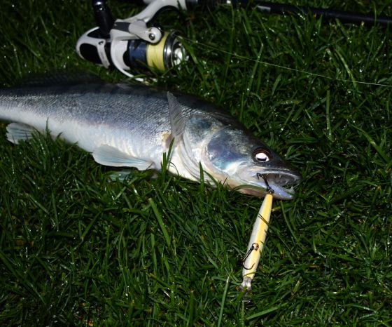 Életem tán legszebb süllője verte le a csalit első leengedésre. Na nem méretre, inkább színre. Május 10.-e volt. Úgyhogy mégsem péntek. Ha más fogja azt mondom, hogy fészkes hal, vagy minimum valami tőzeges tavi. Elképesztő sötét fekete hal volt! Az első multis gumis süllőm.