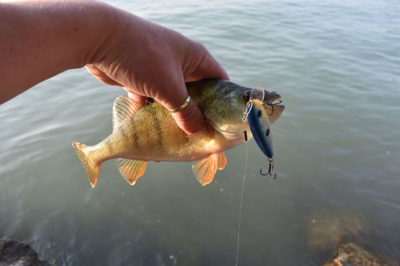 Szóval az első süllő saját minnowra éhezett meg. De hogyan? Amikor emeltem ki a csalit a vízből, tán a hátsó horog még beleérhetett. Na akkor támadta be a süllő a csalit. Gyakorlatilag totál felszíni kapás volt 1,5 méterre tőlem!