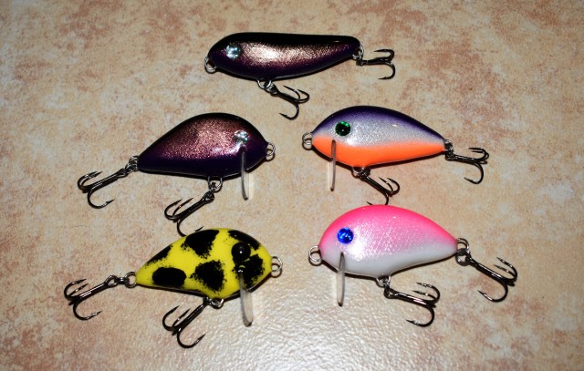 Lovas Feri barátommal már nem tudom mikorra tehető a webes ismeretségünk, de a sok beszélgetésnek az lett a vége, hogy készítettem neki egy regimentet, ami négy darab 5 centis zéro crankből, vagy divatosan wakebaitből és egy darab 6 centis WTD-ből áll.