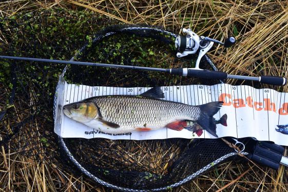 De lejjebb csíptem egy szépet gyári csalival.
