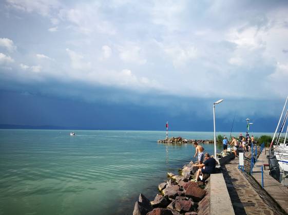 Balatoni gyerekként ez alapján tudtam sok jóra nem számíthatunk. Késve indultunk, mert ő nem hit nekem és nagyon sok emberrel egyetemben egy vendéglátó egység fedett teraszára menekültünk a cunami elől. Vízszintesen esett az eső, majd a jég, majd a poharak és hamutálak, ágak szakadtak le, kukák dőltek fel, székek röpködtek. Az asszonynak ilyenben még nem volt része soha, kapkodta a levegőt rendesen.
