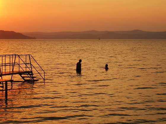 Az esti sétánál aztán a Balaton lenyugodott kicsit és a szebbik arcát fordította felénk. Szokták mondani, hogy lakni az északi, nyaralni a déli partra kell menni. Ez szorosan összefügg avval a kijelentéssel, hogy a déli parton lakóknak azért jó, mert láthatják a gyönyörű északit. Tényleg meseszép az északi oldal!