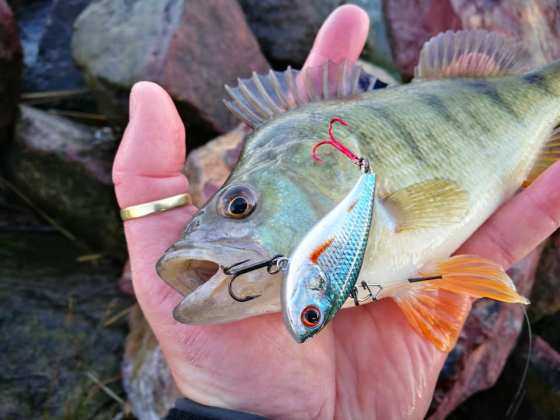 Mivel autóval mentem, így több csalit és két botot vittem magammal. Szó mi szó a szél a jóslatokkal ellentétben még jobban fújt, de kapás az volt. Nem kevés. Már második dobásra, csak éppen nem akartak megakadni a halak. Egy kisebb süllő mellett aztán az FT fat vibes adott egy egész szépet míg a nyerő csali bent nem maradt a kőben.