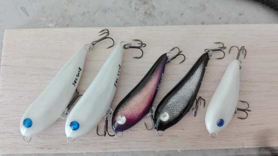 Szerencsére időben kész tudtam lenni a csomaggal, ami két 8 és egy 6 centiméteres white walkert egy chrome witch és blackpurple 7 centiméteres slim axehead WTD-t tartalmazott. (Az axeheades írással is tartozok még, de nemsokára az is jön majd, kisebb átalakulással egyetemben! 😉