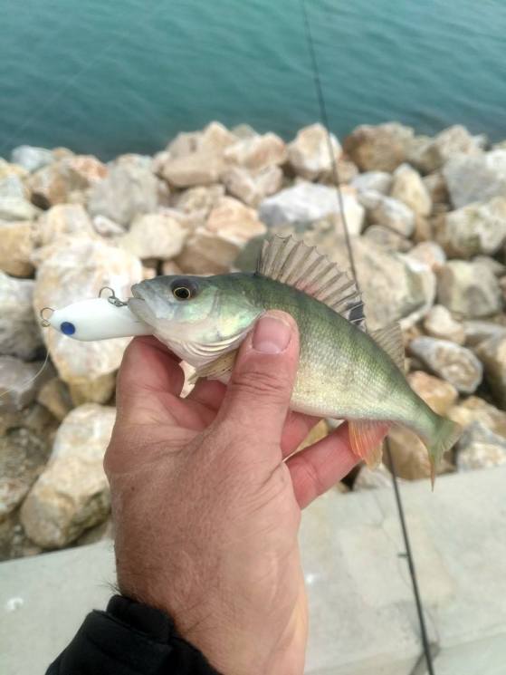Esox balatoni sügérei öt centiméteres axehead white walkerrel. Azon a napon csak ezt ették neki. Se saját, se más gyári csalikat. Igazán örülök neki Bálint, hogy ilyen jól sikerült az a délután. Remélem jövőre hazai pályán a balinok is zabálni fogják. 😉