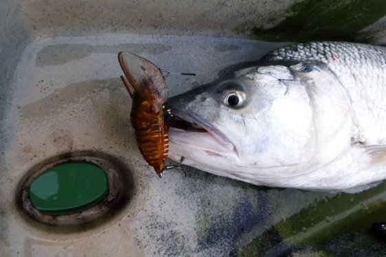 Az idei további pecákon csak sügértől voltak rontott kapásaim erre a csalira. A balinokat mind sikerült elcsípnem, ráadásul egy kivételével mind darabosabb volt. Fogtam vele magányos nyílt vízi halat és az egy szem idei gázlós pecámon ( 😦 ) a cicada adta be az egyetlen olyan balint, ami aznap megakadt a számtalan kapás közül, amik különböző wtd-kre, popperekre érkeztek. Na az pont egy átlagosnak mondható hal volt.