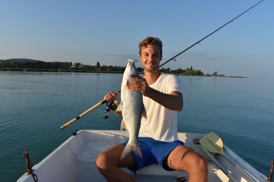 Amikor kikötöttünk két kisöreg is pont ezt tette. Az egyik dicsekedett a két fogott pontyával, kérdezte, hogy nekünk jött e valami?