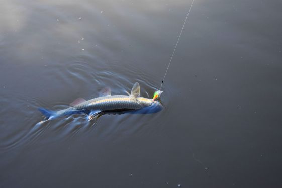 Szóval a másik vízen egy nem kicsi sötét árny követte le a csalit. Őszintén szólva sanszos volt, hogy nem domolykó, de ha az lett volna, akkor brutális rekord jószág. Muszáj volt a csalit visszatennem és hatalmas erejű látott kapással vette le a csalit egy 70+os balin, ami nem sokkal előtte ívhatott le.