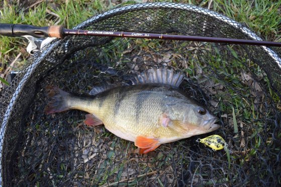 Mivel elfogyott a vizem, ezért lassan elindultam vissza a zúgónál hagyott autóhoz. Feltankoltam és még egyszer megpróbáltam az egyik legkedvesebb helyet a folyón. Már nem olyan ez sem mint régen, látszik, hogy sokan dobják, de mégis tart néha meglepetéseket. Egy igazán szép sügér honorálta az igyekezetemet és Levi csaliját. Fúj már megint egy tilalmas jószág. Irány sügérezni 2 centis gumikkal! 😀
