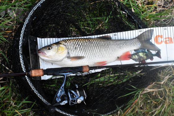 A dolog érdekessége, hogy annál a befolyónál, ahol az első halat fogtam idén nagyon sok domolykót fogtak. Goby crankkel. Ahogy írtam háromszor mentem vissza, annyira bíztam a halban és direkt másik csalikkal nyúztam a helyet. Nem akartam ugyanazzal fogni, mint a helyi erő. A végén csak feltettem és leszedte azt a csalit, amivel az előtte lévő napokban rommá dobták a helyet. 😀