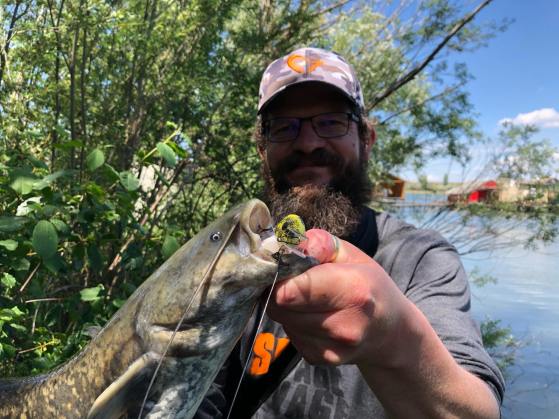 Alattam a szakadt partnál és a mellettem a nádasban ívott a küsz. Dobtam előtte vagy 10 féle csalit. Ez volt az utolsó spot. És a vooodoo child színű dozer megint beadta. Csak éppen bajszos volt és némileg nagyobb, mint a pisztrángsügérek. 😀