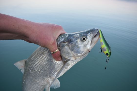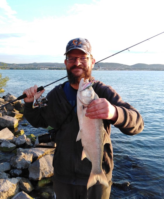 Azóta is megy a peca, de a folyamatos hullámzás miatt a kevéssé okos csalikat preferálják a halak, bár Bence nem tágít és még 30-50 centis hullámok közül is kikarmol egy -egy őnt (ma is hármat fogott 😀 ) a kis jerkbaitjével. Azóta már nekem is sikerült felavatni a saját példányomat.