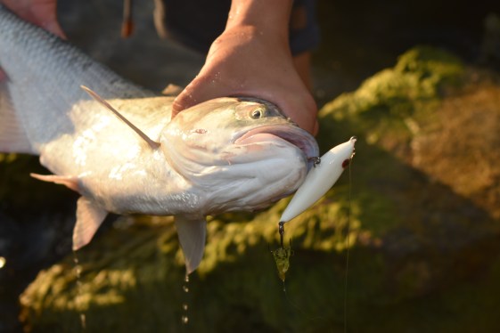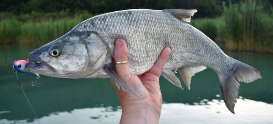 Az utóbbi napokban nem tudtam gyári csörgős felszíni csalikkal balint fogni. Ezen a napon sikerült. Egy balin lemoslékolta a pop walkert.