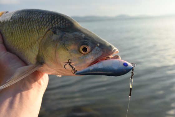 Ez a balin az öböl előtti nádcsomó sarkáról jött és beljebb is éreztem a jó halat, ami ott is volt. Sajnos a WTD hátsó horga összeszedett egy száradt nádszálat, de a bolond balin még így is ledurrantotta. Persze nem akadt.