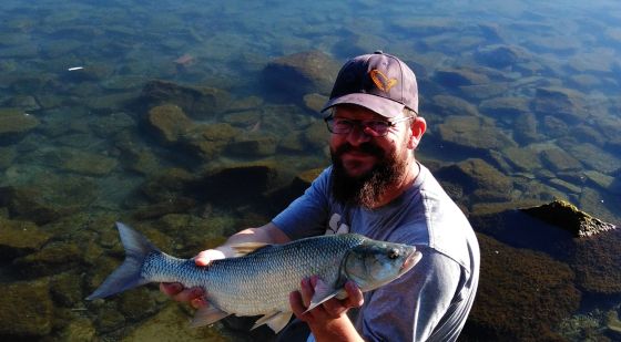 Az első halakat adó szakaszon egy látott halra rádobtam még a wavet, amit két egymás utáni húzásban még megbökött, de aznapra ennyi volt a penzumom. A gázlós kolléga és egy másik kajakos srác nem járt szerencsével, ellentétben ezzel a kabócával, amit kimentettem.