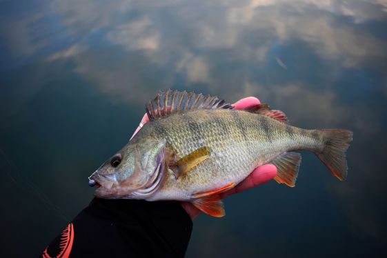 Az első teszt alkalmával mindjárt sikerült gyönyörű sügérekkel avatnom a kis pálcát. Ekkor még a szokásos 3dfry gumihalak és a különböző színű pvc mayfly nymph csalik voltak terítéken. A botra egy 1000-es méretű okuma inspira tökéletesen passzolt. 0,09-es fonottal és 0,26os fluoro előkével vetettem be a kemény terep miatt. A meleg ősz miatt a stég körül még sűrű volt a hínár és a nád, sokszor azt sem láttam hová engedem le a csalit. Sajnos még ennél a zsinórvastagságnál is elég gyakran kellett beszakítanom a motyót, amikor bele akadtam egy – egy horogmarasztaló tereptárgyba, nádszálba. 😦