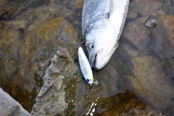Nem tudom egyszerűen megállni, hogy ne próbáljam meg! Egy pillanatra az iménti sajnálatos esemény is kiesik a fejemből és már teszem is a kapocsba a másik kis wave minnowt SFC színben. Elsőre semmi, aztán második dobára, pont a két balin között húzom el. Az egyik nem bírja tovább idegekkel. Ráfordult és leszívja egy hatalmas tolóhullám után, ahogy kell.