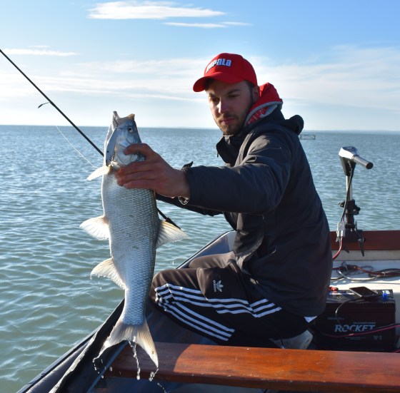 Olivér éppen csalit cserélt, amikor a balin a csónak közelében akkora rablással bombázta be a wave the dogot, hogy azt hitte beleestem a vízbe. 😀