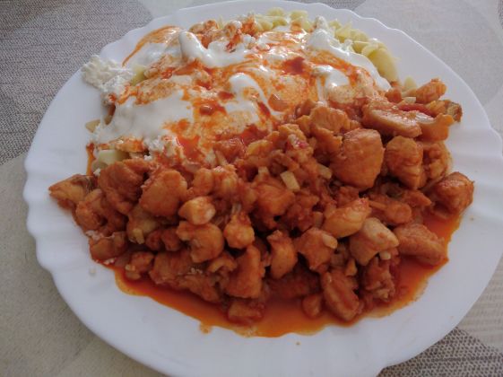 A harcsapörköltet pedig a túrógombóc tetézte gyümölcsmártással. 😛