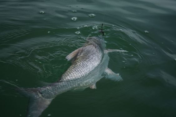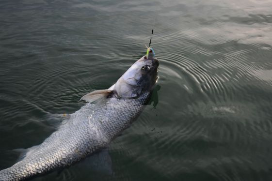 Aztán a csónak előtt, a napkeltében megjött akire vártam. Hatalmas rablás, majd egy igazi nagy balinos burvány mutatta, hogy maradt még jó hal a pályán az előző napi kánaán után.